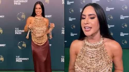 Isabelle Nogueira brilha no Earthshot Prize com look sustentável feito de sementes de açaí e fibras da Amazônia